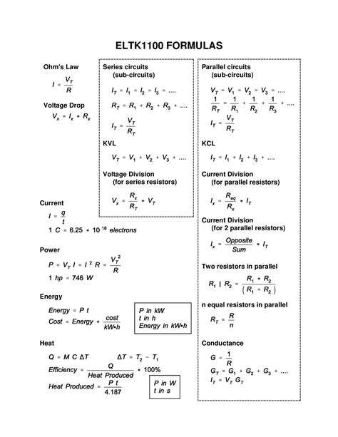 Free PDF basic-electronics-formula-cheat-sheet Hardcover